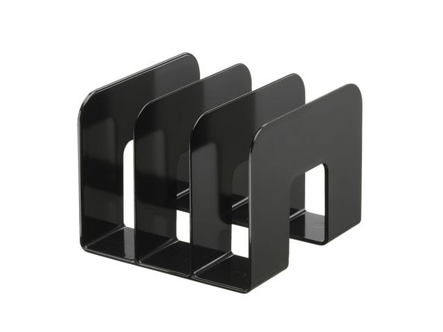 Organiser filer, bøker og andre medier på en effektiv måte3 skillevegger Slitesterk plastkonstruksjon for langvarig brukFarge: SvartBokstativet måler 215 x 210 x 165 mm