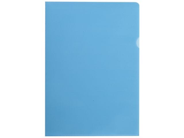 Mappe med gjennomsiktige arklommer i A4-format med glatt teksturFor lagring og fremvisning av dokumenter og katalogerTopp- og sideåpningMateriale: PolypropylenfolieTykkelse: 100 mikrometerFarge: Blå