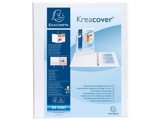 Exacompta Kreacover®-innstikkperm har gjennomsiktige lommer på forsiden, baksiden og ryggen, slik at du kan tilpasse permen og raskt identifisere innholdet.