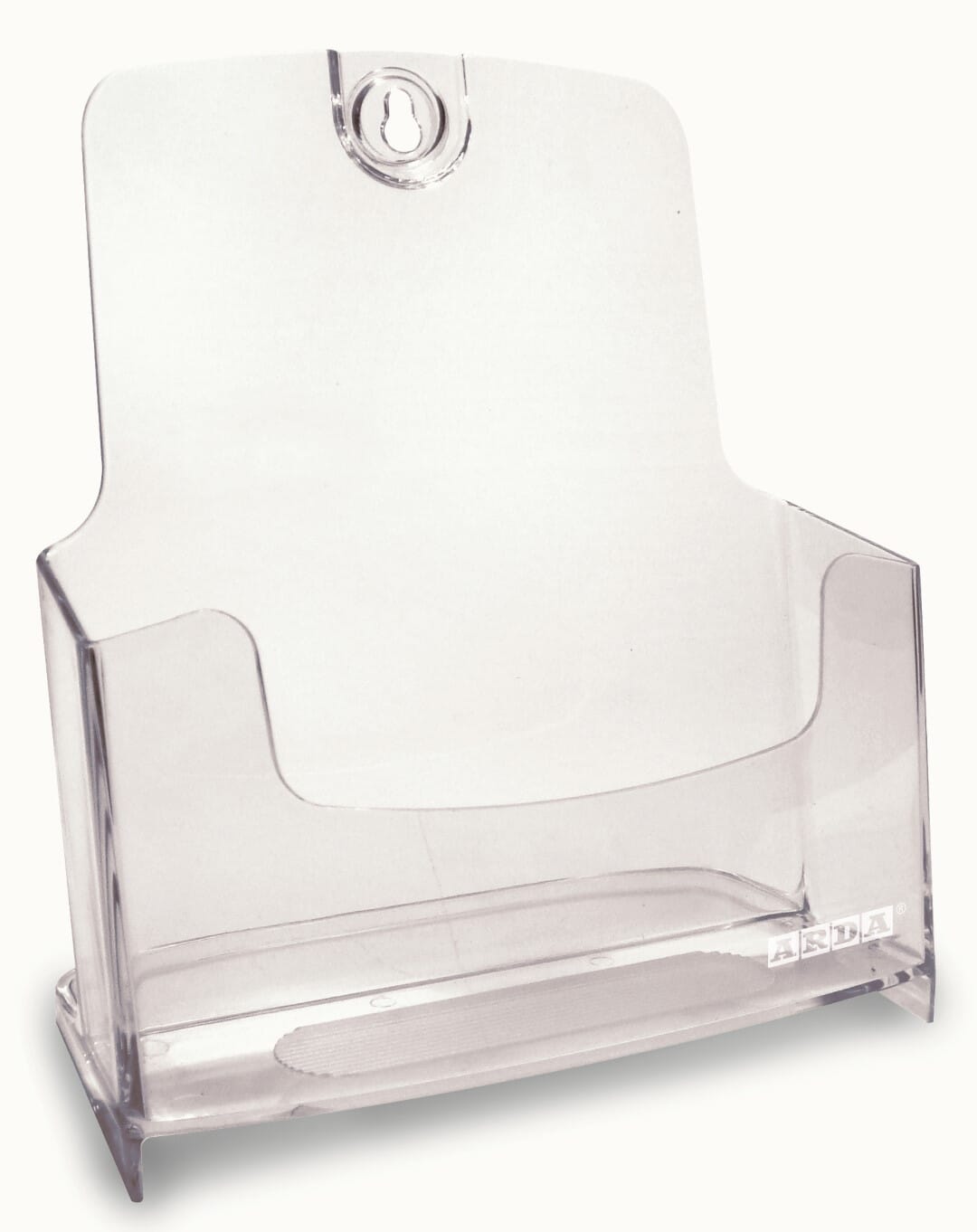 Broschyrställ för exponering av flyers, broschyrer, tidskrifter med mera. Tillverkade av glasklar polystyren. DESPECCONFERENSMIXEDBRANDS2022