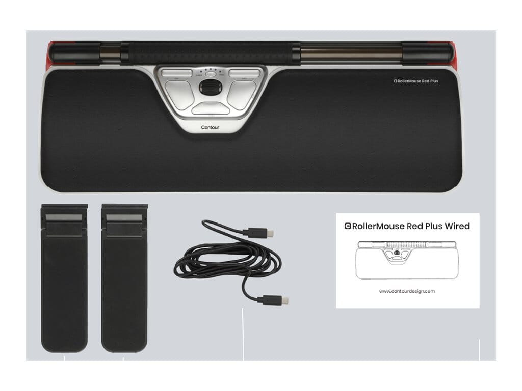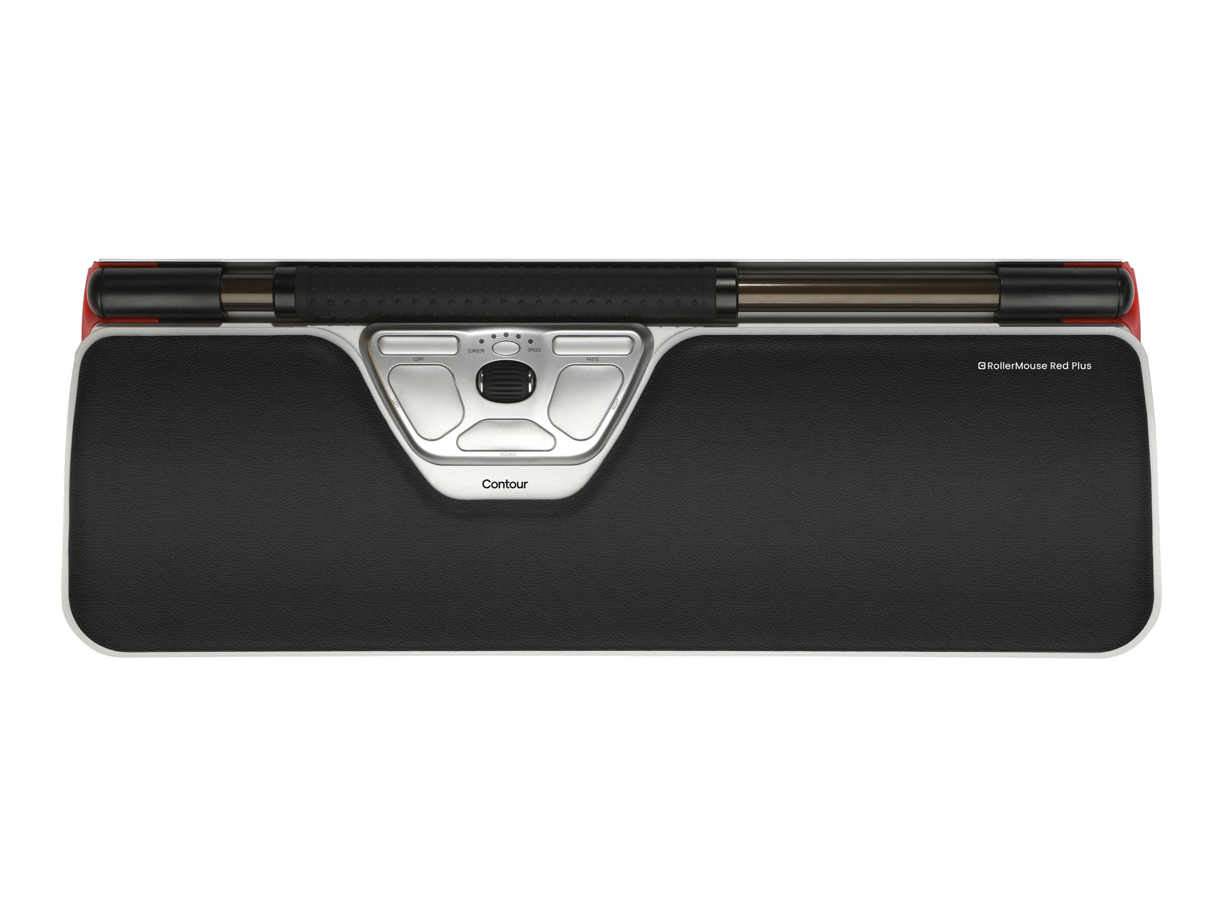 RollerMouse Red Plus fra Contour Design er en premium-mus i aluminium, med ergonomisk midtjustering samt en rullestav med brede riller og et rullehjul for bedre styring.