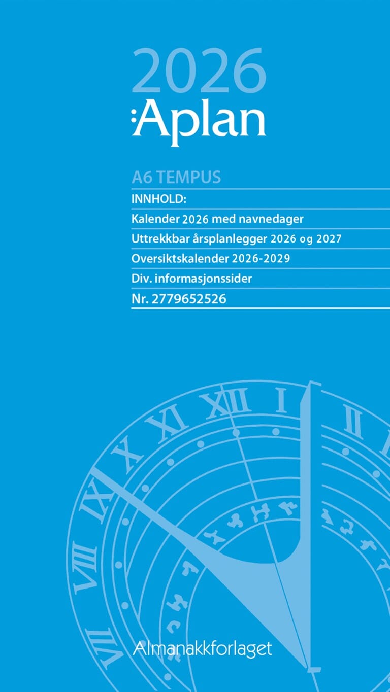 Praktisk års-sett for din Aplan perm.Unihulling gjør at det passer i de fleste permer, også Filofax samt Grieg, Alle papirbaserte Aplan produkter er miljøsertifisert etter anerkjente internasjonale standarder slik at de minst mulig påvirker vårt felles ytre miljø. Sidestørrelse: 9,2 x 16,8 cm Hullet for Aplan 70 gr papir En dag pr. side Norsk Klokkeslett fra-til: 08:00-18:00 2 farger sort og rød i kalender Årsoversikt innværende og neste år Månedoversikt inneværende og neste år Notatsider 16 siders atlas Norske navnedager © Norske helligdager