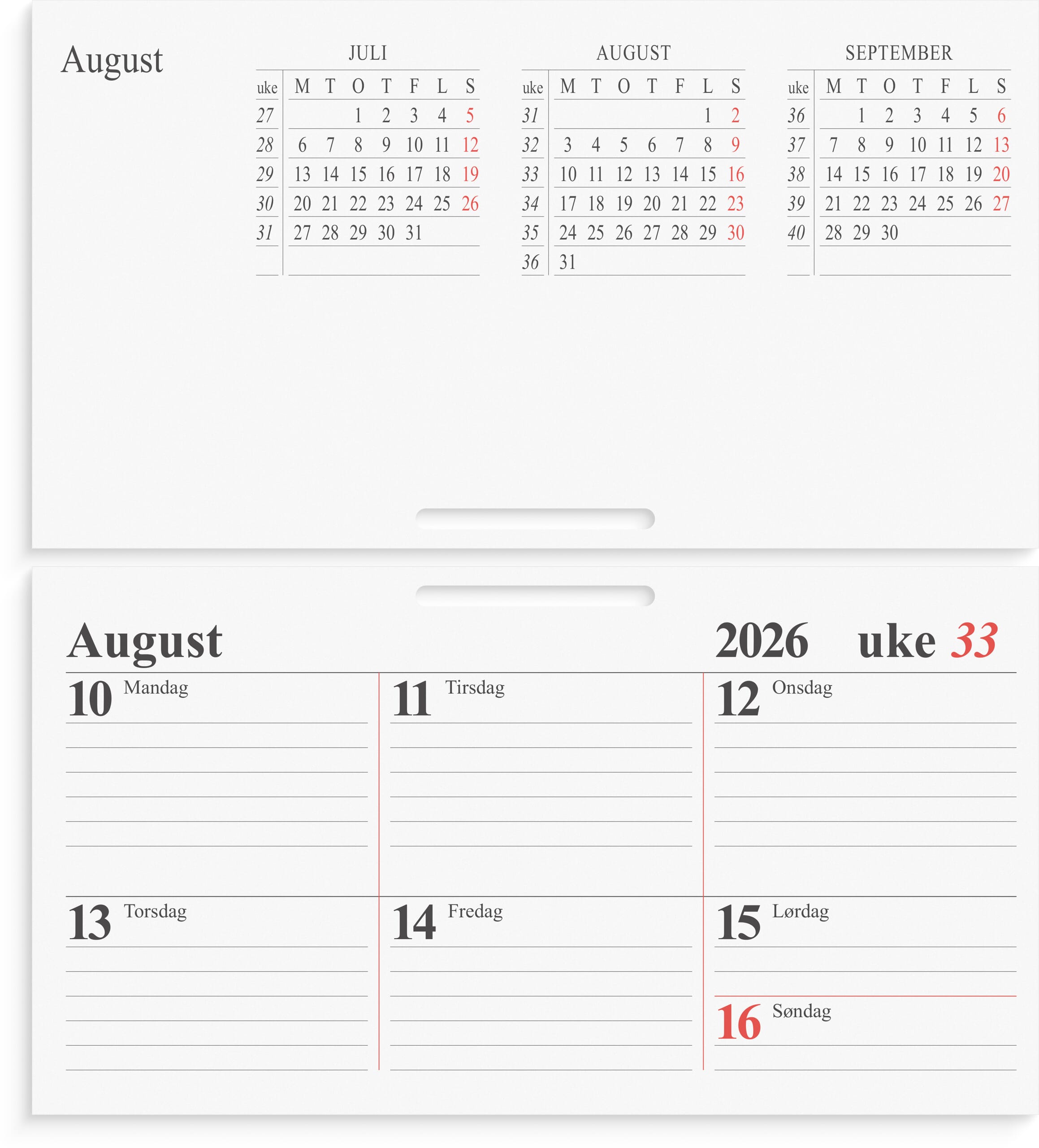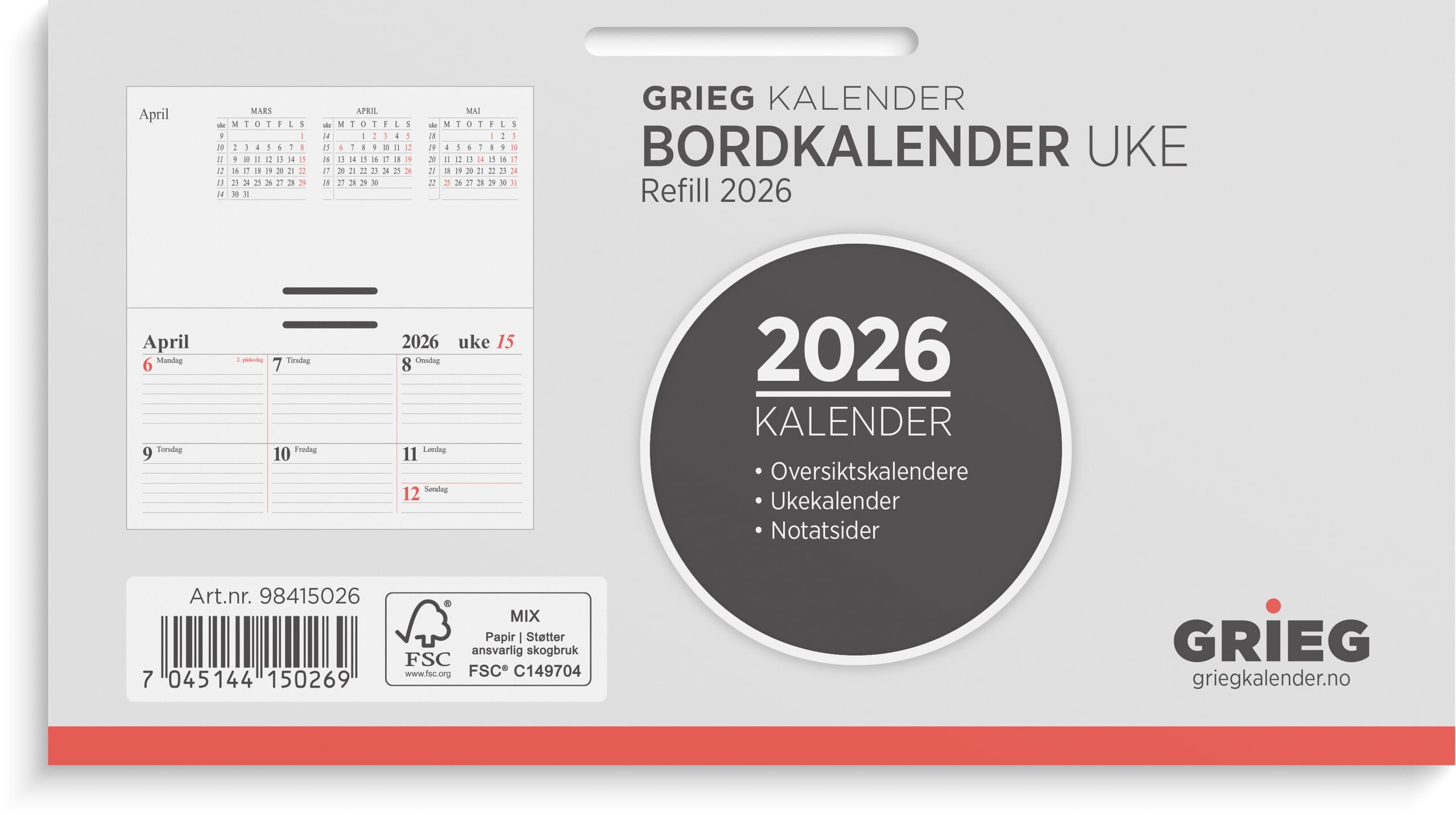 Bordkalender uke er perfekt å ha på pulten på kontoret! Den gir deg full oversikt over hvilken uke som er aktuell og den er samtidig liten slik at den ikke stjeler for mye plass. Her har du en uke over en side, oversikt over tre foregående måneder og plass til å notere. Kalenderen er miljømerket FSC®, som betyr at hele produktet er produsert med papir og annet trevirke fra et ansvarlig og bærekraftig skogsbruk. Den inneholder månedsoversikt og årsoversikt. - Følger kalenderåret - Omslag i kartong - Hullet for passende stativ 92 3664 00(Kjøpes separat) - 3 mnd. oversiktskalender - Notatplass hver uke - Stående uke/side - 112 sider - 80g papir - Format: 180x98mm