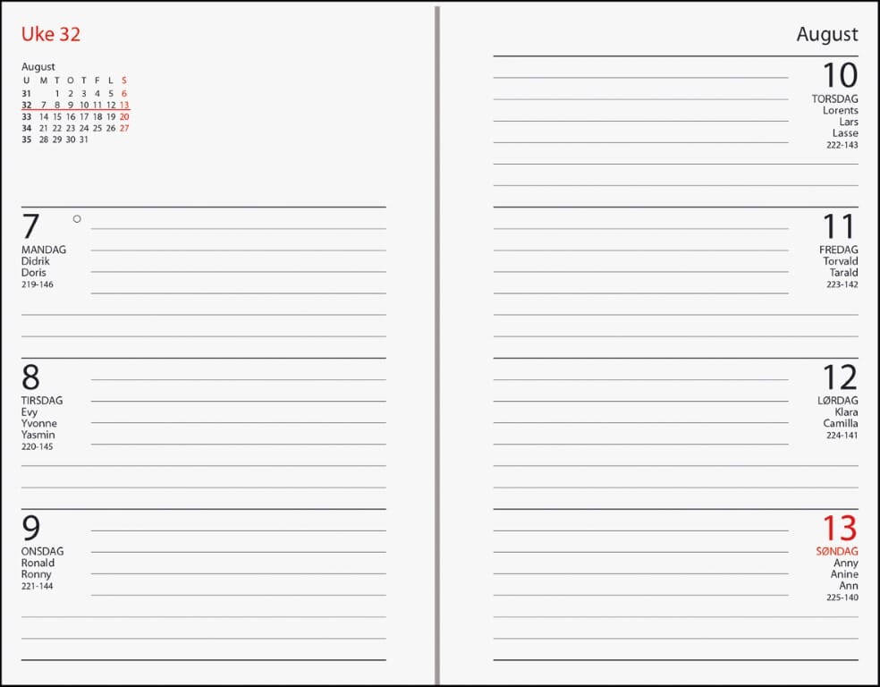 7.sans Adnotam er en kalender som fremmer mye notatplass sammen med mye informasjon. Gjør dine private personlige notater hver dag. En kompakt kalender som får plass nær sagt over alt. Enkel å ha med seg for å få en rask oversikt over hverdagen. Utførelse i mange materialer og farger. Inneholder mye informasjon, samt atlas. Alle 7.sans produkter er miljøsertifisert etter anerkjente internasjonale standarder slik at de minst mulig påvirker vårt felles ytre miljø. Sidestørrelse: 8,2 x 12,8 cm Hjørneperforering 60 gr papir En uke på to sider Norsk Røde søndager og helligdager Årsoversikt innværende og neste år Månedoversikt inneværende og neste år Notatsider og infosider 16 sider atlas Norske navnedager © Norske helligdager