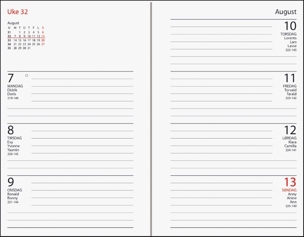 7.sans Adnotam er en kalender som fremmer mye notatplass sammen med mye informasjon. Gjør dine private personlige notater hver dag. En kompakt kalender som får plass nær sagt over alt. Enkel å ha med seg for å få en rask oversikt over hverdagen. Utførelse i mange materialer og farger. Inneholder mye informasjon, samt atlas. Alle 7.sans produkter er miljøsertifisert etter anerkjente internasjonale standarder slik at de minst mulig påvirker vårt felles ytre miljø. Sidestørrelse: 8,2 x 12,8 cm Hjørneperforering 60 gr papir En uke på to sider Norsk Røde søndager og helligdager Årsoversikt innværende og neste år Månedoversikt inneværende og neste år Notatsider og infosider 16 sider atlas Norske navnedager © Norske helligdager