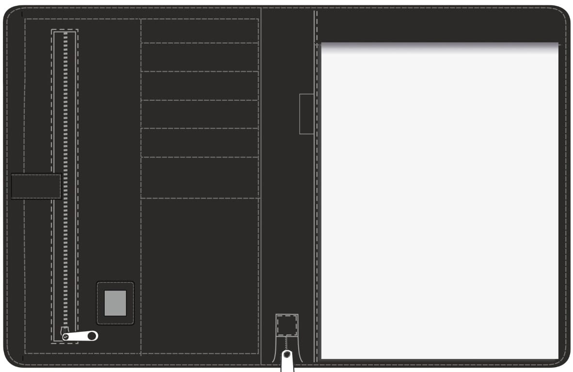 Konferansemappe Draupne er laget i et godt og slitesterkt imitert skinn omslag. Den har god plass for diverse ark, kort ol i tillegg til blokken som medfølger.