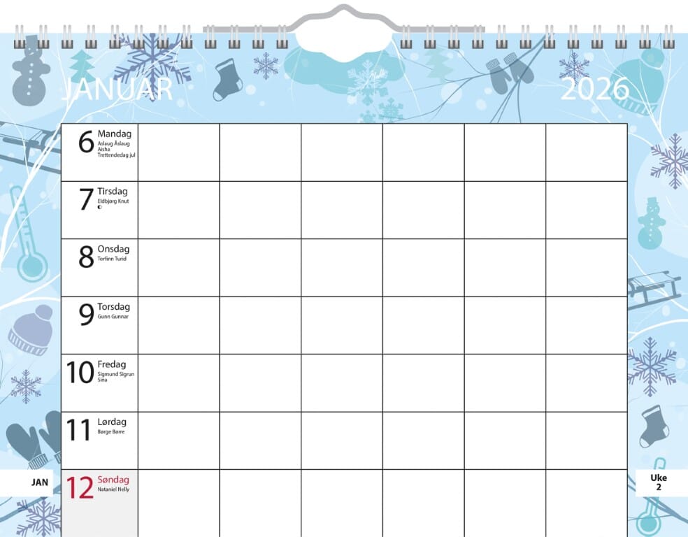 7.Sans Familiens Hvem, Hva, Når er storselgeren hva gjelder kalender for planlegging av aktiviteter for hele familien. Uunværlig i planleggeingen av uken. Gir god oversikt for alle familiemedlemmer. Praktisk ukekalender for å skrive opp aktiviteter på alle medlemmene i familen hver dag . Alle 7.sans produkter er miljøsertifisert etter anerkjente internasjonale standarder slik at de minst mulig påvirker vårt felles ytre miljø. Sidestørrelse: 29 x 21 cm Spiralisert 135 gr papir En uke pr. side Norsk Multifarger Årsoversikt inneværende år Norske navnedager © Norske helligdager