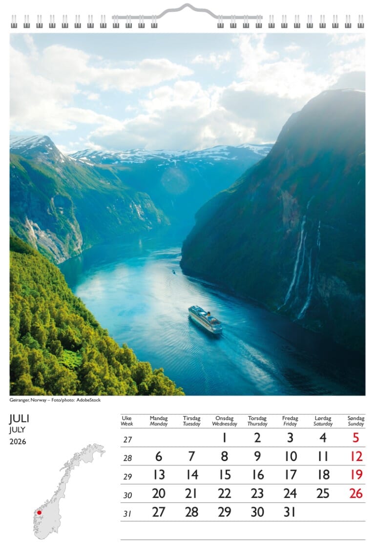 7.Sans Fjell og Fjord gir oss den daglige oversikten i hjemmet eller på kontoret. Utmerket for hjemmkontor Veggkalender med flotte motiver. Praktisk hjelp i planleggingen av en hektisk hverdag. Alle 7.sans produkter er miljøsertifisert etter anerkjente internasjonale standarder slik at de minst mulig påvirker vårt felles ytre miljø. Sidestørrelse: 29 x 41,5 cm. Spiralisert. 150 gr papir. En måned pr side. Norsk. Multifarger. Årsoversikt inneværende og neste år. Norske helligdager