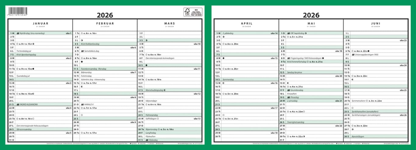 7.sans Kontorkalender, dobbel A4 er en kalender som brukes ofte av mange. Ett kvartal pr side, gir en enkel og god oversikt. A4 Dobbel . Alle er like enkle å bruke. A4 er enkle å ta med. Leveres i stiv kartong for ekstra holdbarhet. Alle 7.sans produkter er miljøsertifisert etter anerkjente internasjonale standarder slik at de minst mulig påvirker vårt felles ytre miljø