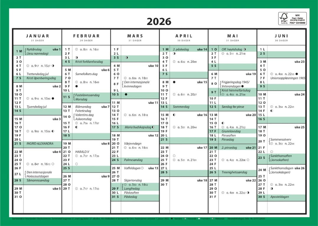 7.sans Kontorkalendere er en kalender som brukes ofte av mange. Ett halvt år pr side, gir en enkel og god oversikt. A4 . Alle er like enkle å bruke. A4 er enkle å ta med. Leveres i stiv kartong for ekstra holdbarhet. Alle 7.sans produkter er miljøsertifisert etter anerkjente internasjonale standarder slik at de minst mulig påvirker vårt felles ytre miljø.Sidestørrelse: 29,7 x 21 cm A4 enkel 315 gr kartong 6 måneder på en side Norsk 2 farger sort og grønn Norske helligdager Uunnværlig oversiktskalender for kontorpulten eller hvor det måtte være