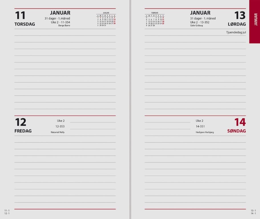 7.sans Spiralkalender er en hendig fleksibel kalender. Spiralkalender har 4 dager på et oppslag. Trykte månedtabbe gjør den enkel å bruke. Alle 7.sans produkter er miljøsertifisert etter anerkjente internasjonale standarder slik at de minst mulig påvirker vårt felles ytre miljø. Sidestørrelse: 11,7 x 19,7 cm Hjørneperforering 80 gr papir To dager pr. side Norsk Røde søndager og helligdager Årsoversikt innværende og neste år Månedoversikt inneværende år Notatsider Norske navnedager © Norske helligdager