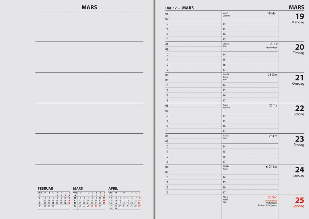 7.sans Ukekalender er en hendig fleksibel ukekalender i A5 format. På høyre side hver uke har du god notatplass for hele uken. Hver uke perforert for avrivning for optimal oversikt. Gjør den fleksibel både for avtaler og notater. Enkel å ha med overalt. Alle 7.sans produkter er miljøsertifisert etter anerkjente internasjonale standarder slik at de minst mulig påvirker vårt felles ytre miljø. Sidestørrelse: 14,8 x 21 cm A5 70 gr papir En uke på to sider Norsk Klokkeslett fra-til: 08:00-17:00 Røde søndager og helligdager Årsoversikt innværende og neste år Månedoversikt inneværende og neste år Notatsider Norske navnedager © Norske helligdager