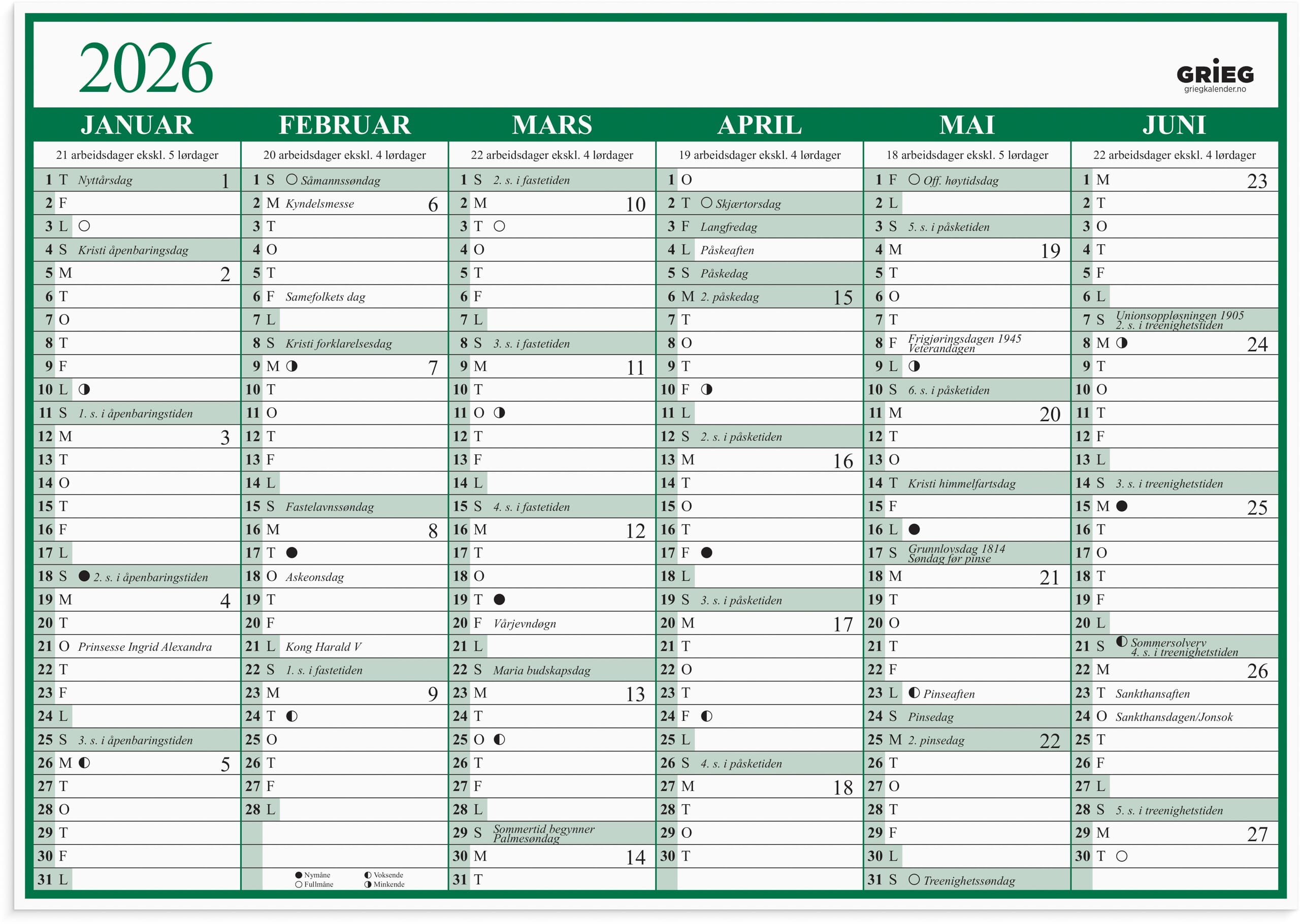 Platekalender er Norges mest solgte kalender, og den kommer i flere størrelser. Her har du den i et stort A3 format. Platekalenderen har 6 mnd. på hver side, som gir deg rask og god oversikt over hele året. Med plass for notater, oversikt over månefaser, helligdager og kongelige fødselsdager. Opphengshull gjør den enkel å henge på veggen. Kalenderen er miljømerket FSC®, som betyr at hele produktet er produsert med papir og annet trevirke fra et ansvarlig og bærekraftig skogsbruk. - Følger kalenderåret - Trykket på kartong - Notatplass hver dag - Helligdager - Månefaser - Kongelige fødselsdager - Opphengshull - Stående halvår/side - 2 sider - 350g kartong - Format: 420x297mm