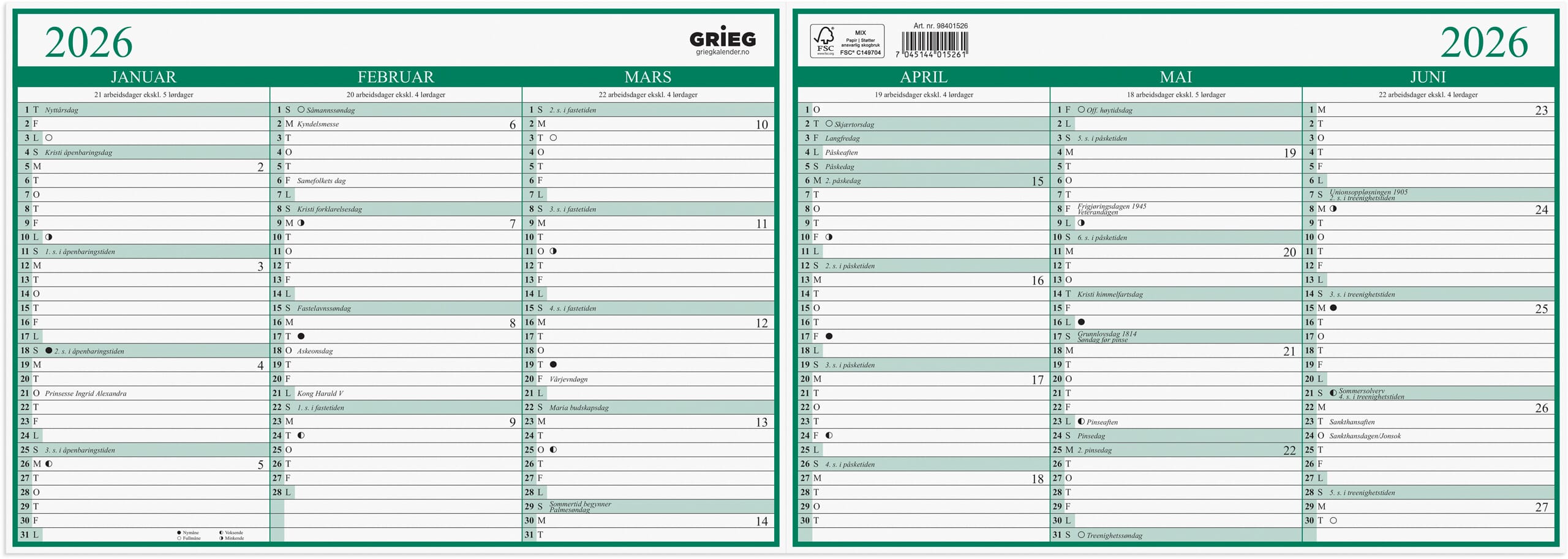 Platekalender er Norges mest solgte kalender, og den kommer i flere størrelser. Her har du den i dobbel A4. Platekalenderen har 3 mnd. på hver side, og totalt 4 sider som brettes ut til dobbel A4. Dette gir deg rask og god oversikt over året. Med plass for notater, oversikt over månefaser, helligdager og kongelige fødselsdager. Opphengshull gjør den enkel å henge på veggen. Kalenderen er miljømerket FSC®, som betyr at hele produktet er produsert med papir og annet trevirke fra et ansvarlig og bærekraftig skogsbruk. - Følger kalenderåret - Trykket på kartong - Notatplass hver dag - Helligdager - Månefaser - Kongelige fødselsdager - Opphengshull - Stående 3 måneder på hver side - 4 sider - 350g kartong - Format: 297x210mm