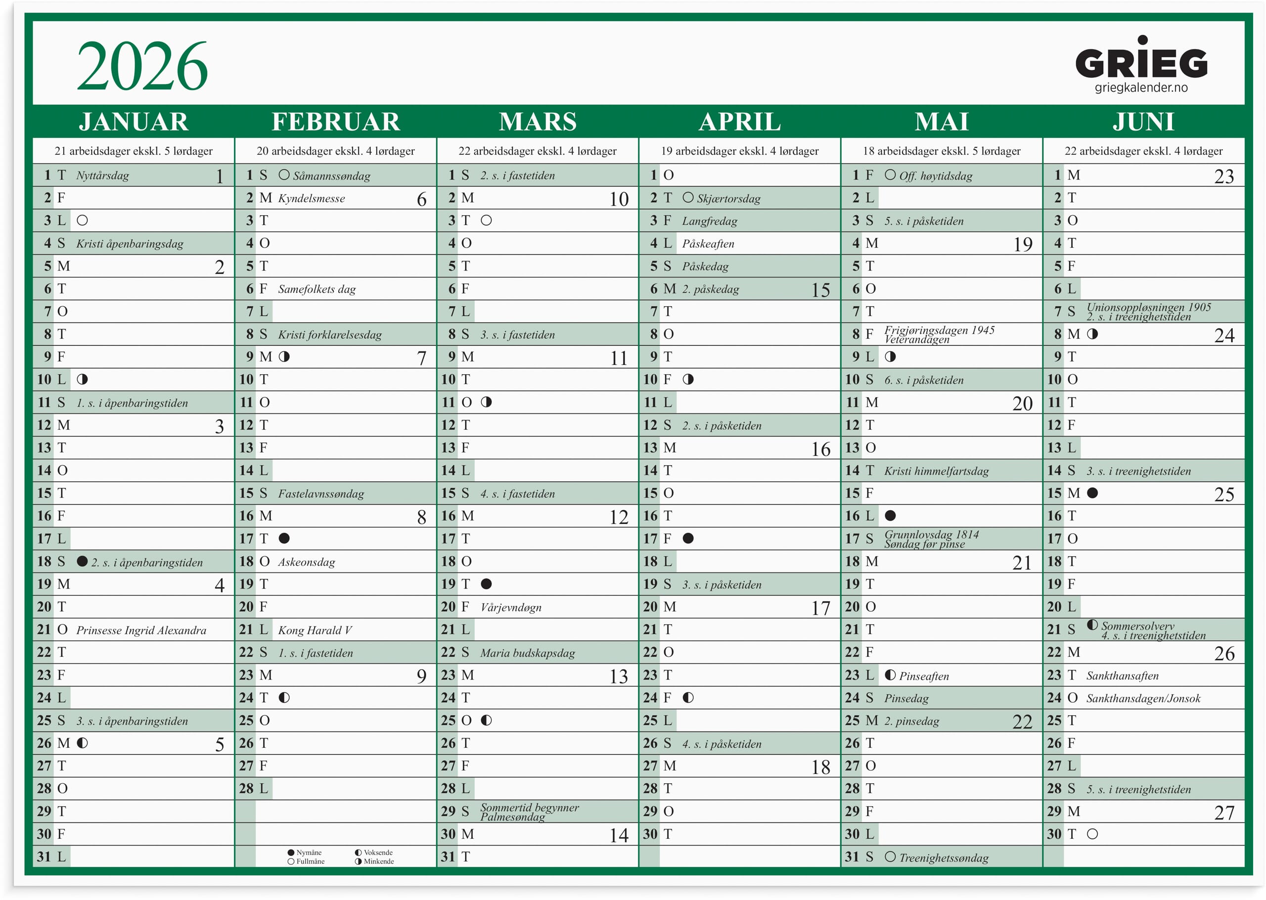 Platekalender er Norges mest solgte kalender, og den kommer i flere størrelser. Her har du den i et hendig A5 format. Platekalenderen har 6 mnd. på hver side, som gir deg rask og god oversikt over hele året. Du har plass til å notere dine daglige avtaler, og du finner også oversikt over månefaser, helligdager og kongelige fødselsdager. Opphengshull gjør den enkel å henge på veggen. Kalenderen er miljømerket FSC®, som betyr at hele produktet er produsert med papir og annet trevirke fra et ansvarlig og bærekraftig skogsbruk. - Følger kalenderåret - Trykket på kartong - Notatplass hver dag - Helligdager - Månefaser - Kongelige fødselsdager - Opphengshull - Stående halvår/side - 2 sider - 350g kartong - Format: 210x148,5mm