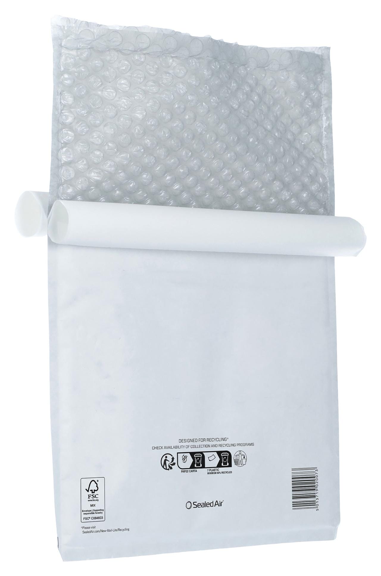 Konvoluttene er laget med solid papir på utsiden, og AirCap-bobleplast med 60% resirkulert materiale, på innsiden. Selvklebende forsegling gjør pakkingen smidig - ingen tape nødvendig.