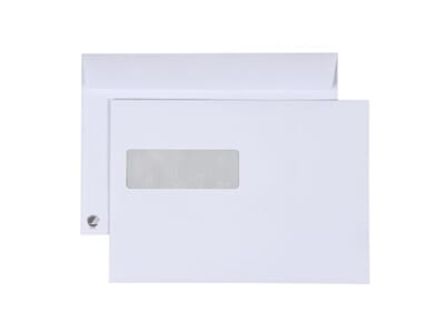 Konvolutten har selvklebende lim med et dekkark som beskytter limetDen er i et hvitt 90 grams papirFormat C5 med vindu, med målene 162 x 229mm