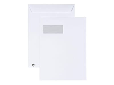 Posen er har en selvklebned klaff med dekkark som beskyttter limet Konvolutter er i et hvitt 100 grams papir med vinduFormat EC4, med målene 229 x 312 mm