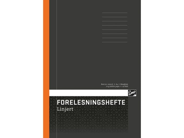Emo forelesningshefte linjert med marg.