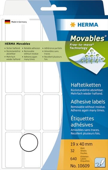 Stabilt festet med Movables®-teknologi, fester på alle slette, tørre og rene overflater. Helt avtakbare uten å etterlate seg rester. Perfekt for midlertidige merkinger eller for ømfintlige overflater. FSC® Mix Credit sertifiser.