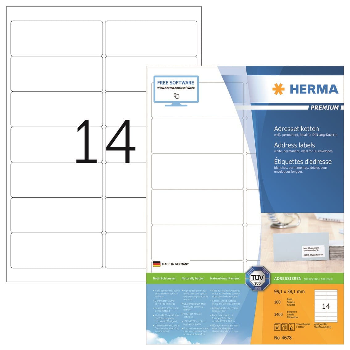 Herma Etiketter premium A4 99,1X38,1mm (1400)