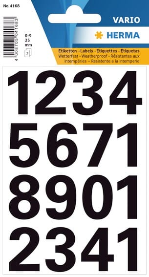 Herma Nummeretiketter Vario 0-9 25 mm sort