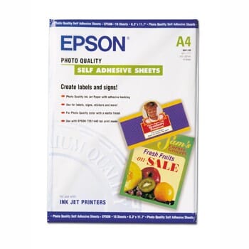 Selvklebende fotopapir, A4, 167g/m2. Antall ark: 10. Passer til følgende printere: Stylus Photo: EX / EX2 / EX3 / 700 / 710 / 720 / 750 / 810 / 790 / 830 Series / 890 / 895 / 915 / 925 / 935 / 870 / 875DC / 900 / 950 / 1200 / 1290 / 1270 / 2000P / R800 / 700 / R1800 / R2400 Stylus : C20 Seires / C40 Series / C42 Series / C43 Series / C44 Series / C45 / C46 / C48 / C60 / C62 / CX3200 Stylus Color : 400 / 600 / 750 / 640 / 700 / 660 / 670 / 440 / 500 / 460 / 480 series / 580 / 680 / 740 / 860 / 800 / 850 / 810 / 830 / 830U / 880 / 980 / 900 / 950 / 1160 / 1520 / 3000