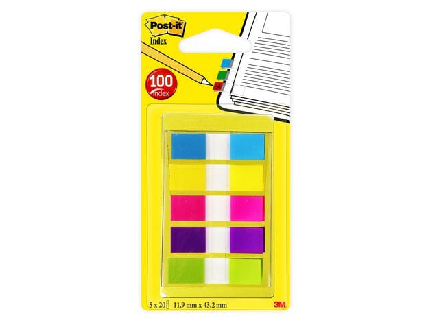 Post-it®-indeksmarkører er en praktisk løsning for en rekke oppgaver på kontoret eller i hjemmet. Du kan blant annet merke av viktige sider i store rapporter eller merke av bestemte oppskrifter i kokebøker. Disse små Post-it®-markørene er nyttige hvis du trenger å merke av noe til senere. Denne pakken leveres i en rekke sterke farger, og de er store nok til at du kan skrive overskrifter på dem. Den gjennomsiktige delen som festes til siden, dekker ikke over tekst eller bilder på siden. De leveres i et hendig plastomslag og er et nyttig hjelpemiddel når du skal fargekode viktige dokumenter, kataloger eller mapper til senere bruk.