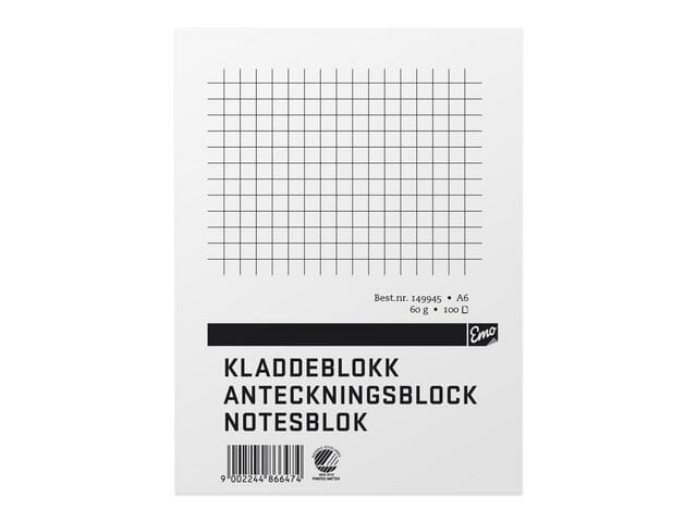 KLADDEBLOKK EMO A6 60G 100 BLAD RUTER