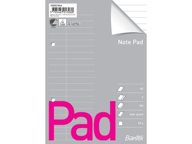 Notatblokk Bantex A5 sidelimt linjert(5)