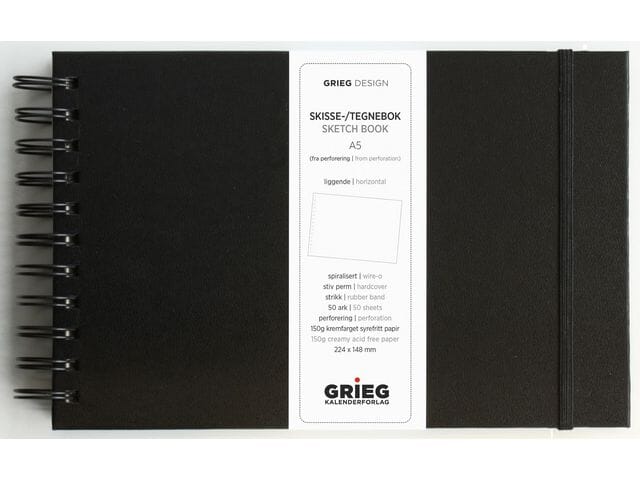 Spiralisert rygg, strikk for lukking og perforert rivekant på arkene