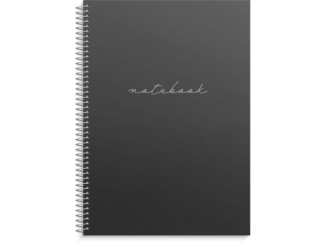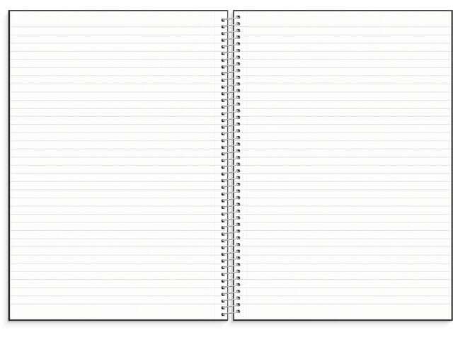 Skrivebok med omslag i trykket kartong. - Linjert - Vekt: 80 g papir - Antall ark: 80 - Format: A4 - Farge: sort - Sølv spiral