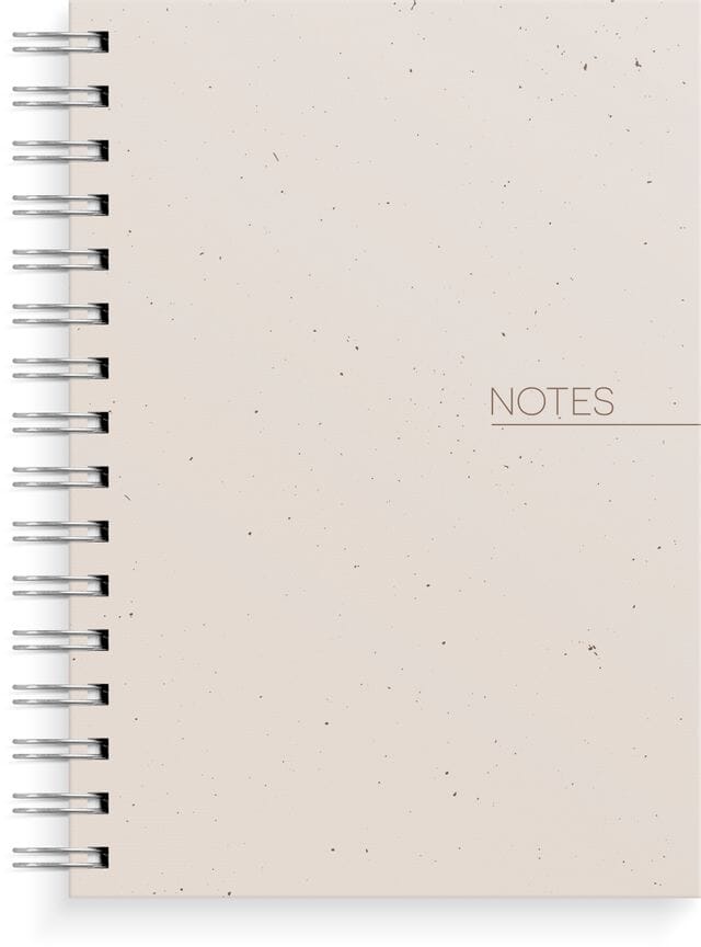 Skrivebok med omslag i kartong med sølv spiral. - Format: A5 - Farge: krem/beige - Linjert: ja - Vekt: 70g - Antall ark: 150 - Antall sider: 300 - FSC®