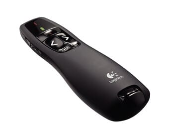 Med de praktiske kontrollene på Logitech® Wireless Presenter R400 kan du enkelt få fram budskapet ditt. Du trenger ingen programvare, bare sett mottakeren inn i en usb-port så er du klar. Med en rekkevidde på 15 meter og en batterimåler, kan en vanlig presentasjon bli noe utenom det vanlige. Den røde laserpekeren gjør presentasjonene enkle, selv i de mørkeste forsamlingssaler.