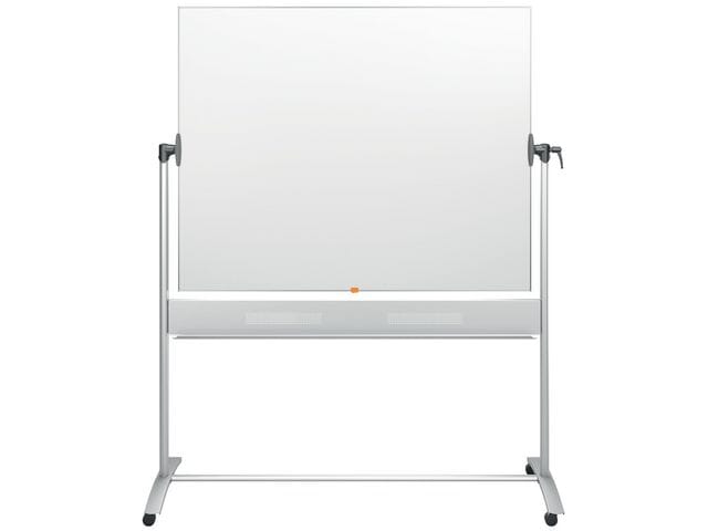 Nobo® Classic Mobile-whiteboardtavlen med magnetisk overflate i malt stål har hjul som er enkle å bruke og gir deg økt mobilitet. Å ha begrenset med veggplass er ikke lenger et problem når denne store tusjtavlen kan rulles rundt og flyttes fra ett rom til et annet. I tillegg er det enkelt å rengjøre den eller tørke bort notater under teammøter med tavlens magnetiske overflate i malt stål og muligheten til å tørrvaske den. Denne mobile whiteboardtavlen kan også brukes mer effektivt takket være den dobbeltsidige funksjonen, som fungerer sammen med en horisontal roteringsmekanisme. Nobo® Classic Mobile-whiteboardtavlen med magnetisk overflate i malt stål er moderne, stor og kommer med en stor pennehylle.
