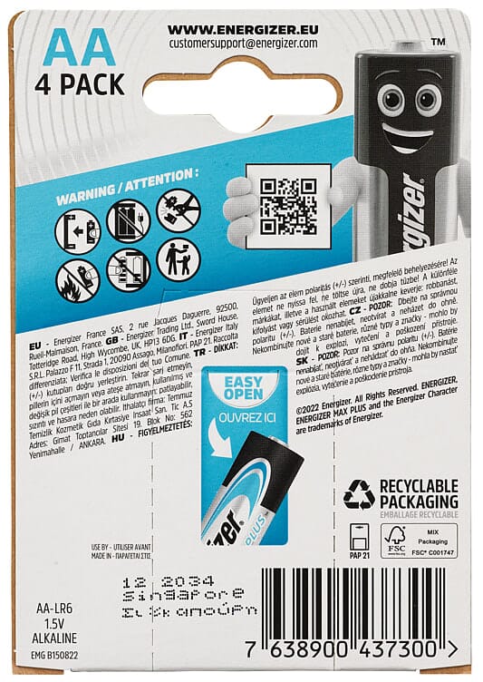 Disse Energizer®-batteriene Alkaline Max Plus er de klassiske batteriene for hjemmebruk.