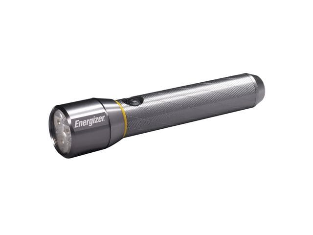 Lommelykt Energizer® Vision HD med kraftig lys. Holdbar arbeidslykt som tåler regn og fall fra 1 meters høyde. Lommelykten har 1 LED-pære og et sterkt kabinett av aluminium med bærerem. Godt grep med mønstret overflate. - Vanntetthet: motstår vannsprut fra alle retninger (IPX4) - Energizer høykvalitets stor metall stavlykt LED 1300 lumen - 4 t brukstid - 230 m lysstråle - Dimmemodus: ingen mørk skygge i strålen - Smidig digital omkobling gir 3 moduser: høy, strømsparing, nødblink - Lysstyrke: 1300 lumen - Bruker 6 stk. AA-batterier (følger med)