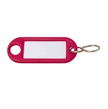 Nøkkelbrikke i plast med etikettholder, utstyrt med vindu og etikett. Brikke: 54 x 21mm, etikett: 32 x 14mm. 100st/fp.
