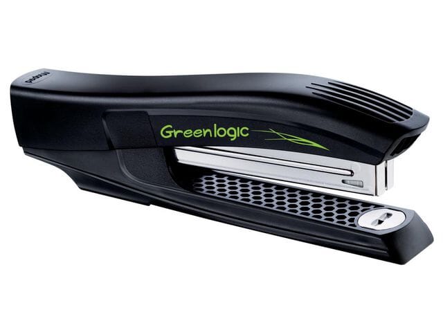 Maped Greenlogic stiftemaskin for opptil 20 ark. - Kassettkapasitet: 150 24/6 stifter eller 200 26/6 stifter - Stiftedybde: 84 mm - 180° åpning for enkel fylling - Trekkflik av metall - Materiale: 100 % postindustriell resirkulert plast