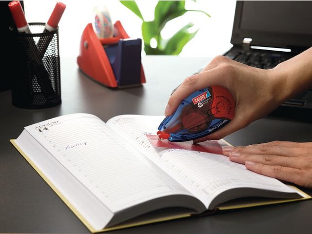 TESA Limroller Permanent er perfekt for ren og enkel liming av kontormaterialer som papir, kartong og bilder. Den slitesterke PET-teipen med en spesiell limbelegg gir sterk og varig hefting. Den rødlige limen gjør det enkelt å se hvor limen er påført for presis bruk.