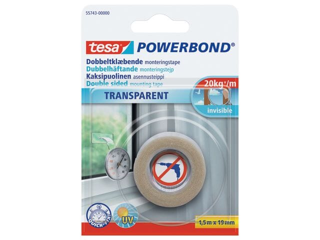 tesa® Powerbond Transparent dobbeltklebende monteringstape er utviklet for rask, sikker og permanent festing av gjenstander på alle glatte og solide overflater.