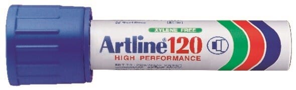 Permanent merkepenn med 20mm rett spiss. Rasktørkende. Er vannfast. Aluminiumskropp. Alkoholbasert permanent tusj uten Xylen. Kan fylles på nytt. Farge: blå