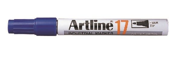 Permanent merkepenn for industrielt bruk med 1,5 mm rund fiberspiss. Rasktørkende. Meget vannfast og lysbestandig, alkoholbasert permanent tusj som inneholder Xylen. Farge: blå