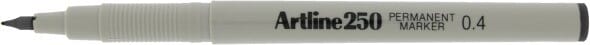 Permanent merkepenn med plastspiss, 0.4 mm. Hurtigtørkende, vannfast, plasthylse, kork med clips, alkoholbasert permanent tusj uten Xylen. Farge: sort.