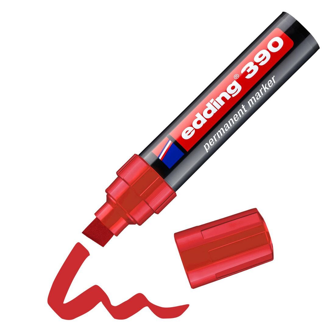 Edding® 390 permanent merkepenn er utviklet for store oppgaver der kraftig og synlig skrift er nødvendig. Med en bred, skråskåret spiss (412mm) får du kraftige og markerte linjer som synes godt ideell for tydelig merking på pappesker, lagerhyller, skilt og mer. Den skriver jevnt på de fleste overflater, inkludert plast, metall, glass og tre. Blekket er permanent, vann- og flekkbestandig, og det hurtigtørkende og luktfrie blekket gjør den både effektiv og behagelig i bruk også ved lengre oppgaver. Takket være den slanke og lette aluminiumsutformingen ligger pennen godt i hånden, og med mulighet for etterfylling, er den også et bærekraftig valg. - Hurtigtørkende og vannbestandig blekk - Gir kraftige og synlige linjer - Skriver på plast, metall, glass, tre og mer - Luktfritt og egnet for lengre arbeidsøkter - Lett aluminiumsdesign for god skrivekomfort - Etterfyllbar - Spisstype: Skrå - Strekbredde: 412mm - Farge: Rød