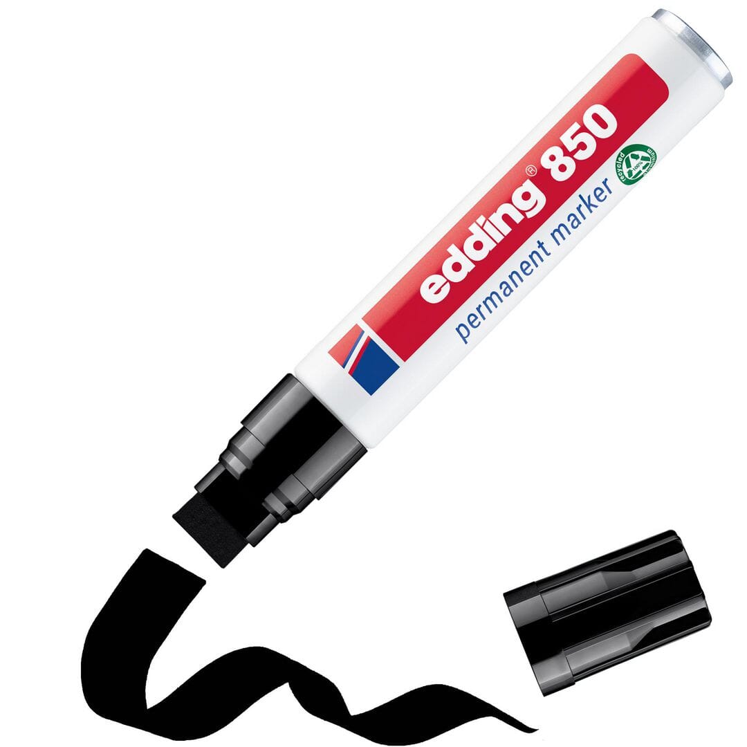 Edding® 850 permanent merkepenn er utformet for mange forskjellige oppgaver og kan brukes på nesten alle overflater. Denne permanente merkepennen benytter hurtigtørkende blekk og er vann- og flekkbestandig, slik at du kan skrive tydelige og plettfrie linjer. Den er spesialutformet som en allsidig merkepenn og nyttig til en lang rekke oppgaver. - Permanent, hurtigtørkende, vann- og flekkbestandig blekk - Utformet for forskjellige oppgaver - Skriver på nesten alle overflater - Kan etterfylles - Bred skråskåret spiss - Strekbredde: 515mm - Farge: Sort