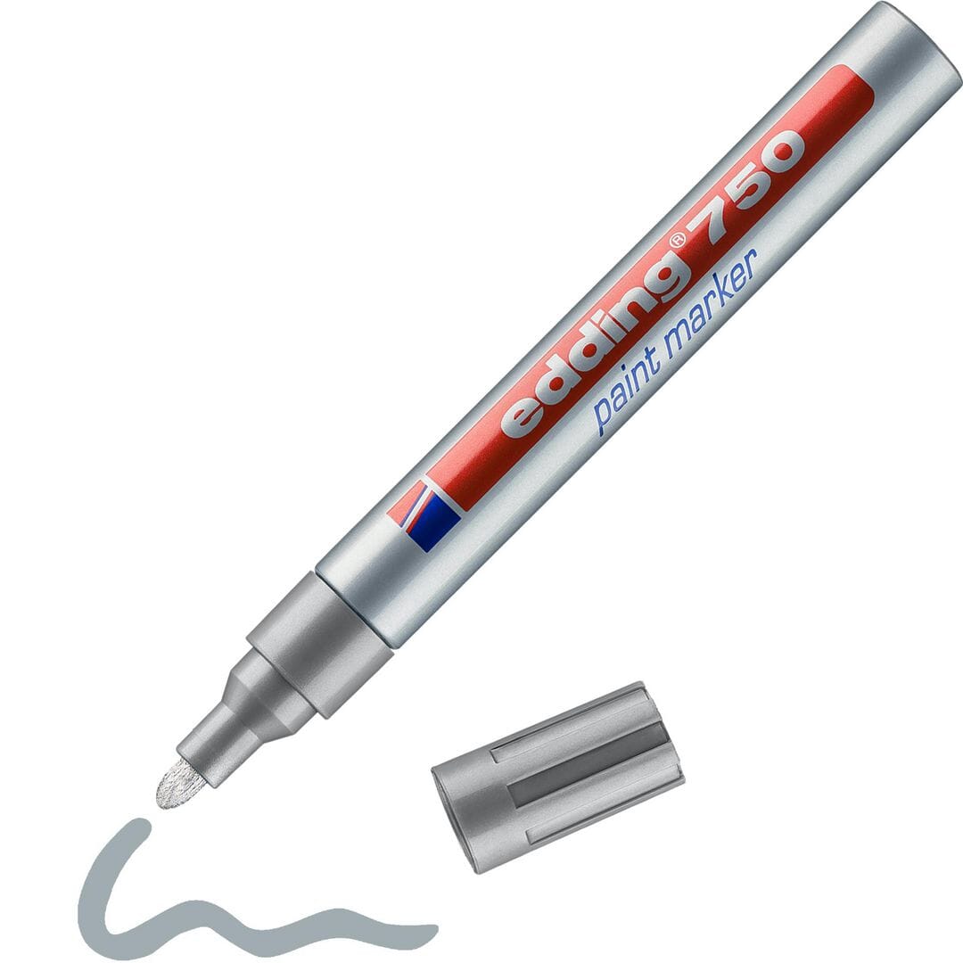 Edding 750-tegnetusj har en tett lakkferniss og skriver jevnt på flere forskjellige overflater. Denne tegnetusjen bruker permanent pigmentblekk som er vann- og slitasjebestandig, noe som gjør den ideell til oppgaver som krever et blekk som kan vaskes ut. Videre er den varmebestandig opp til 400 °C. Tusejn har en kulespiss med en strekbredde på 24mm og kan brukes til hverdagsjobber hjemme. Den skriver med en svært tett lakk og har enestående vedheft, særlig på glatte, porøse og mørke overflater. Den kan skrive på et stort antall forskjellige overflater inklusive plast, metall, glass og treverk. Det spesielle blekket inneholder verken toluen eller xylen, noe som betyr at tusjen ikke avgir ubehagelig lukt. - Permanent tegnetusj - Skriver på mange overflater, som plast, metall, glass og tre. - Vann-, slitasje- og varmebestandig blekk - Hurtigtørkende blekk for mindre avsmitting - Tett lakk og utmerket vedheft - Blekk uten xylen og toluen - Lett aluminiumsutførelse - Strekbredde: 24mm - Farge: Sølv