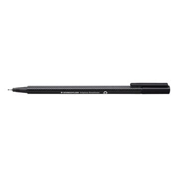 En ergonomisk trekantformet pennekropp og metalkledt superfin spiss sikrer at denne svarte STAEDTLER triplus® fineliner 334-pennen er slitesterk og komfortabel å bruke