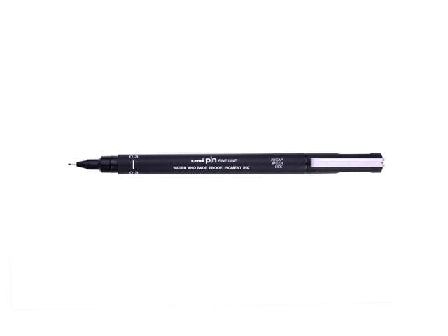 Fineliner-pennTynn spiss på 0,3 mmEgnet for designprosjekter, teknisk tegning og skisseringInneholder Uni Super Ink™ som ikke falmer og er vanntett og sabotasjesikkerKroppens materiale: plast Farge på kropp: SvartBlekkfarge: Svart