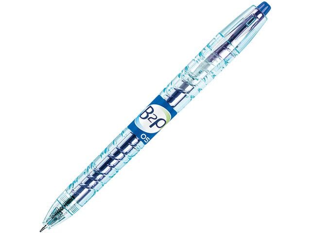 Pilot B2P Ball-rollerpennen med inntrekkbar spiss er formet som en vannflaske og laget av 88% resirkulert plast. Vær mer miljøbevisst og nyt å skrive med B2P-pennen (bottle to pen) med gelblekk, den første pennen laget av resirkulerte plastflasker.